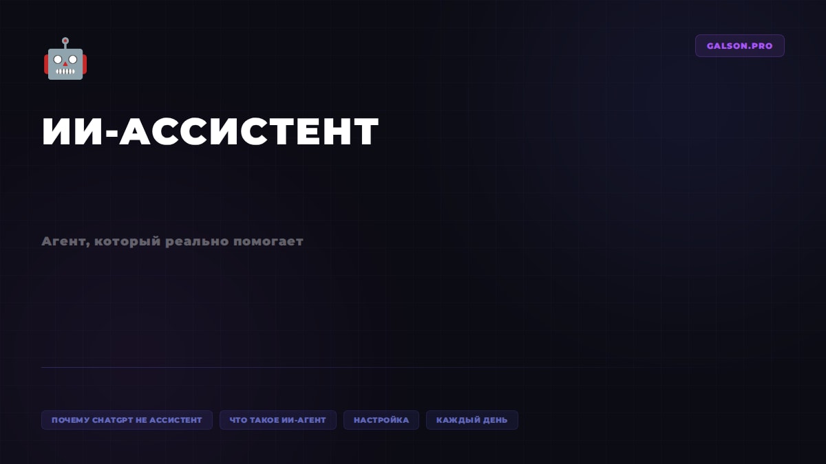 ChatGPT — это окно для вопросов. Вы спрашиваете, он отвечает. Закрыли вкладку — контекст потерян. Открыли новую сессию — объясняете всё заново.