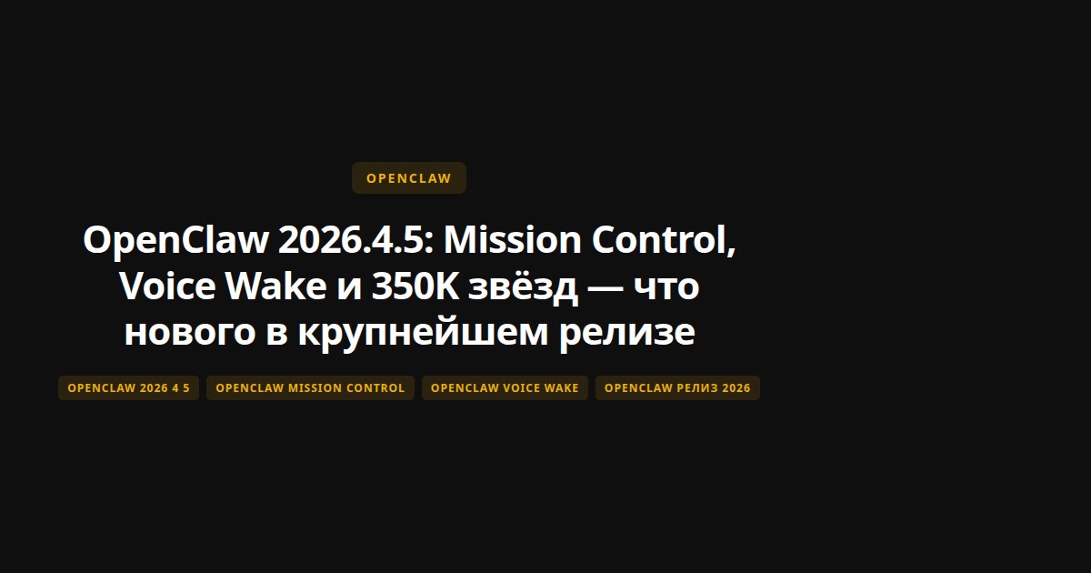 Я слежу за OpenClaw с первых версий. Когда проект набрал 100K звёзд, это уже было событие. А тут -- 350 тысяч. Самый быстрорастущий опенсорс в истории GitHub. И вот вышел релиз 2026.4.5, который добавляет штуки, о которых комьюнити просило месяцами.