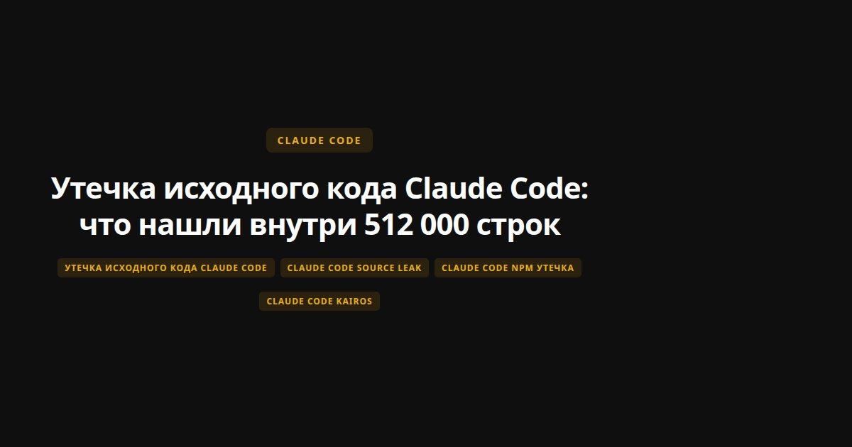 31 марта 2026 года Anthropic случайно опубликовали полный исходный код Claude Code. Source map файл на 59.8 мегабайт. 512 000 строк TypeScript. Около 1900 файлов.